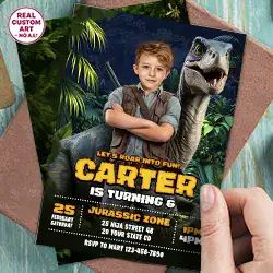 Choose personalized dino-themed designs with photo—where your child becomes the star explorer. Each design is handcrafted from your photo for a keepsake you’ll treasure long after the party.