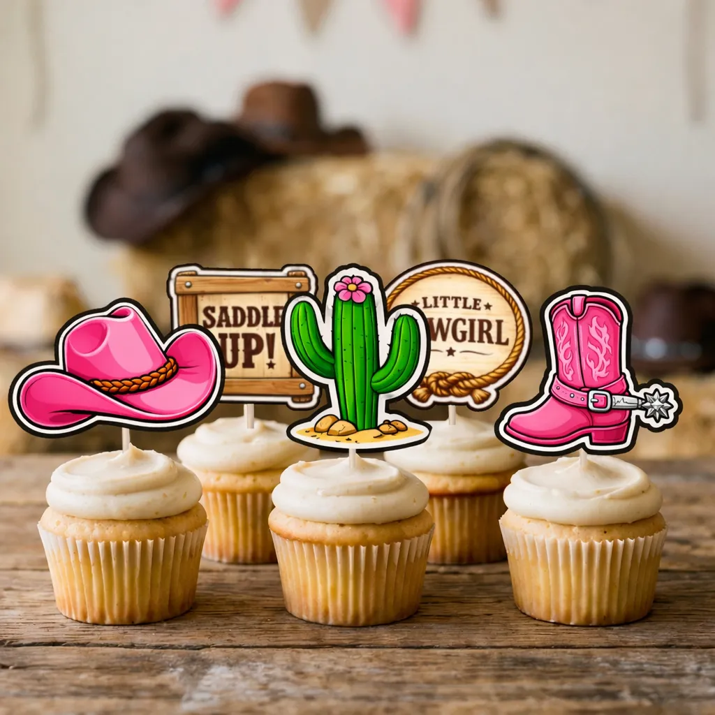 Featuring charming cowgirl details in soft blush and dusty pink tones — think boots, hats, bows, and western accents 🤠💗 Just print, cut, and decorate your treats for a picture-perfect First Rodeo celebration.