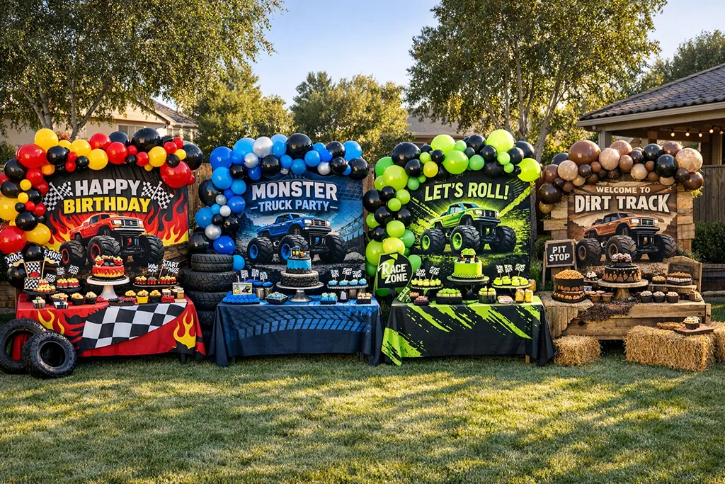 Monster Truck Party Color Themes (Blue, Red, Neon & Dirt Track Styles)