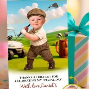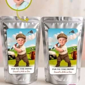 Featuring golf balls, flags, clubs, greens, and your child’s photo, this theme creates a playful yet stylish party atmosphere. Hole in One décor pairs beautifully with creative first birthday party ideas and sporty birthday celebrations for kids of all ages.