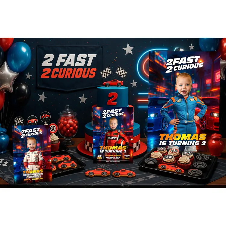 🥳 Complete Your 2 Fast 2 Curious Birthday Invitation Party Look