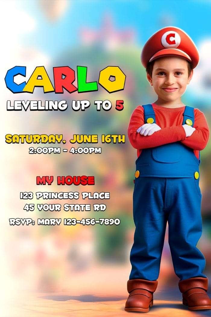 Make your child’s birthday unforgettable with our Adventure World Photo Invitation. Your child’s photo is seamlessly integrated into a playful, game-inspired scene with floating blocks, bright skies, coins and power-up style elements. This is not a generic template — we craft each design by hand in Adobe Photoshop (no AI or auto-templates) for natural proportions, realistic lighting and respectful skin-tone matching.