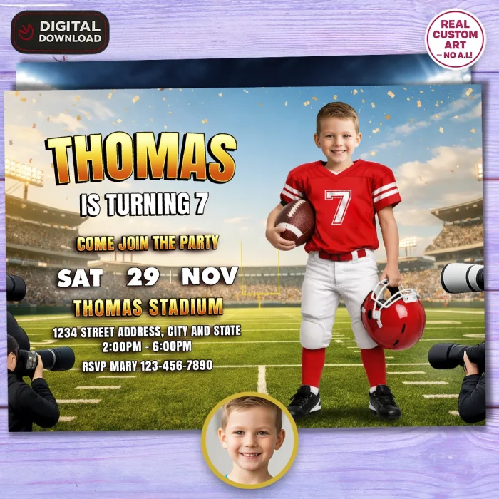 🏈 American Football Invitation – Custom Football Birthday Photo Invite – Delivered in 24h – Digital File