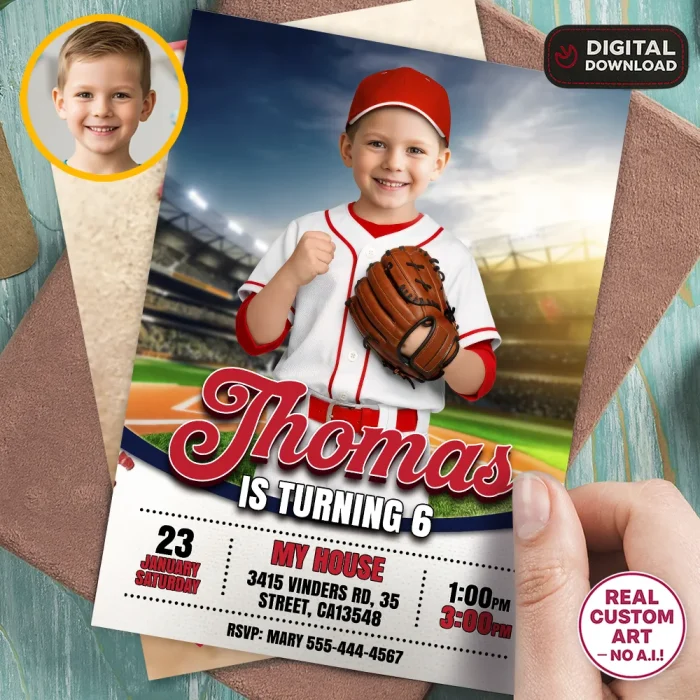 Baseball Birthday Invitation – Custom Baseball Photo Invitation – Delivered in 24h – Digital File