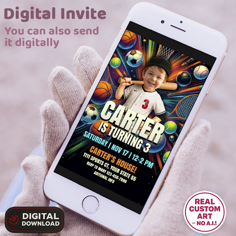 Baseball Party Invitation With Photo – Custom Sports Birthday Invitation – Delivered in 24h – Digital File