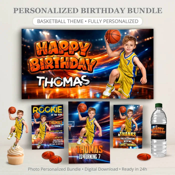 🏀 Basketball Birthday Bundle – Personalized Basketball Party Pack with Photo – Digital Download – Ready in 24h