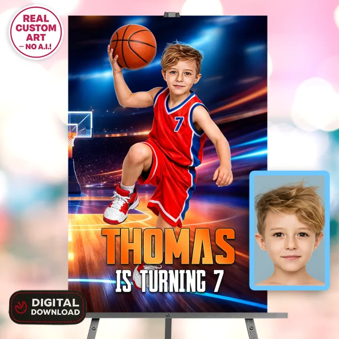 🏀 Basketball Welcome Sign – Personalized Basket Party Decor With Photo (24h Delivery) – Digital Download