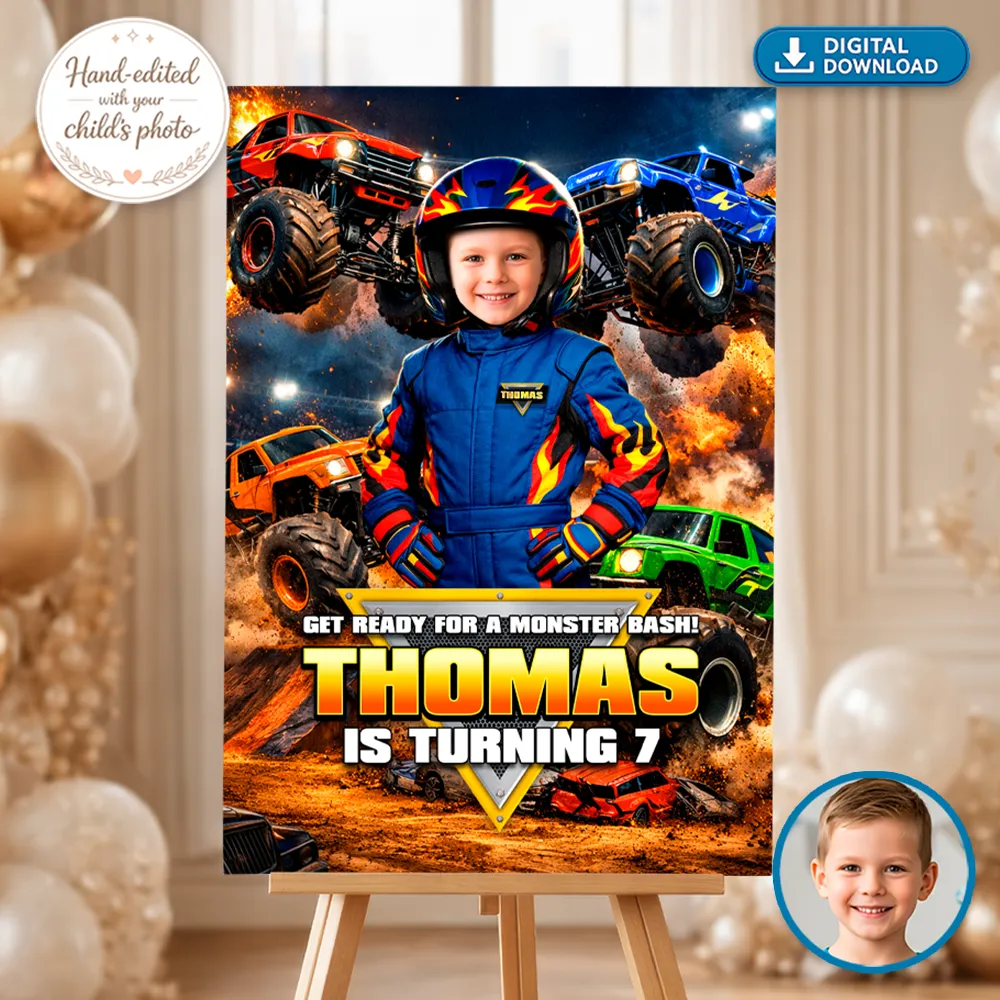 A Personalized Monster Truck Welcome Sign isn’t just a poster — it’s an instant atmosphere booster. Guests walk in and immediately feel the excitement. Parents love that it doubles as a keepsake, while kids feel like real racing champions. Whether printed at home or at a local shop, this sign guarantees big impact with minimal effort. 🚦💥