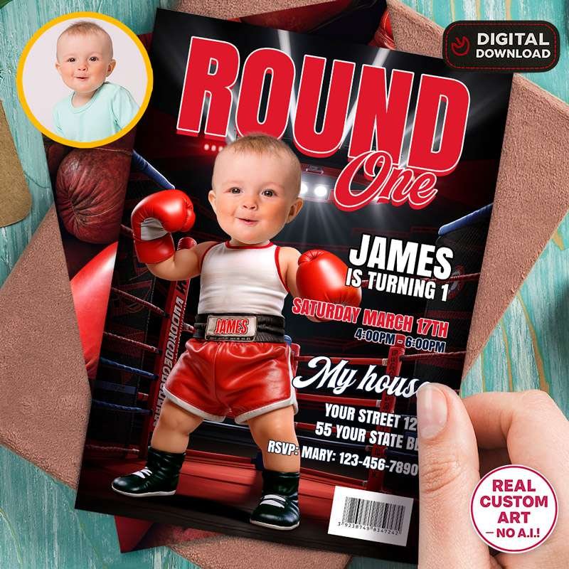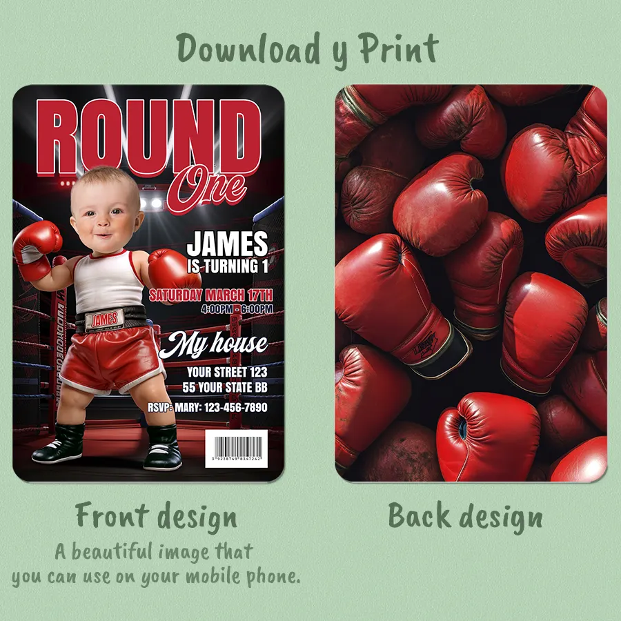 Whether it’s a first birthday or any milestone, our boxing theme party decor starts with the perfect invite. We don’t just paste a photo; our professional designers manually edit your child’s image to ensure they look like a real pro boxer ready for the main event!