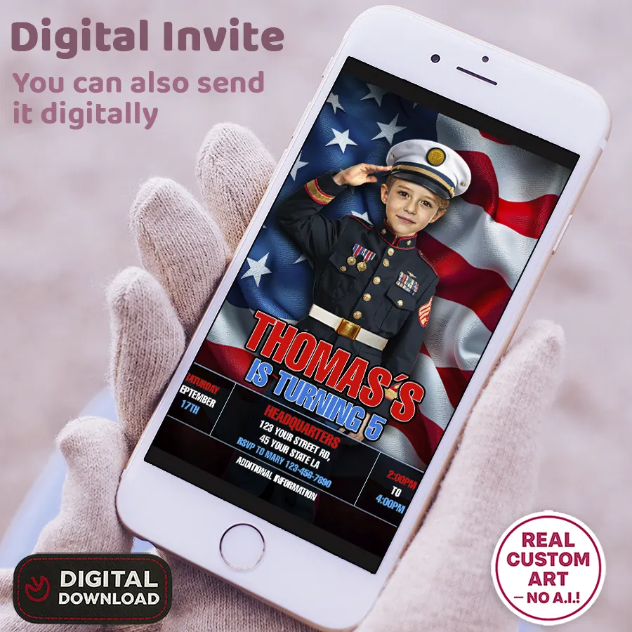 🎖️ Custom Army Marine Birthday Photo Invitation – Custom Military Birthday Invite – Made to Order Digital File