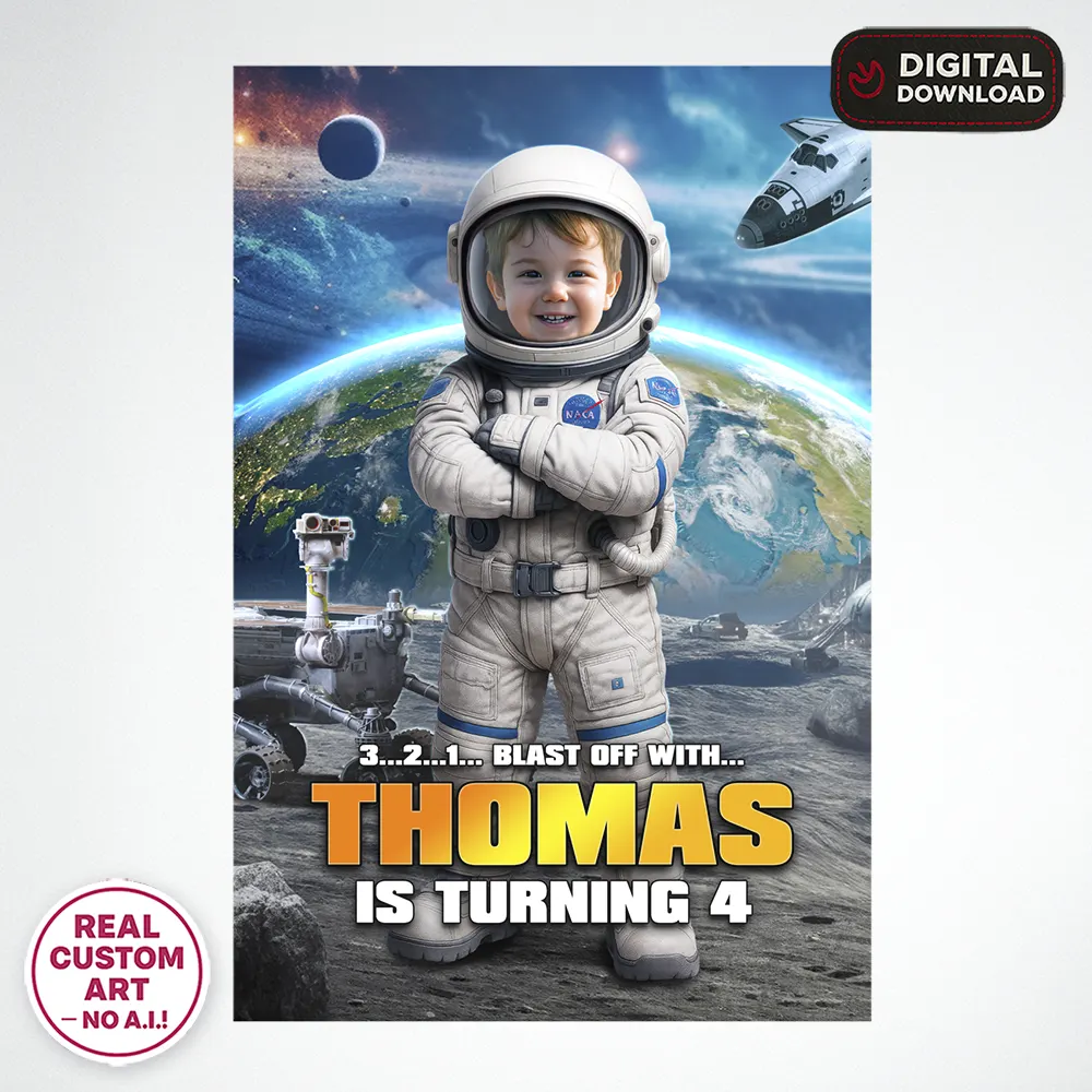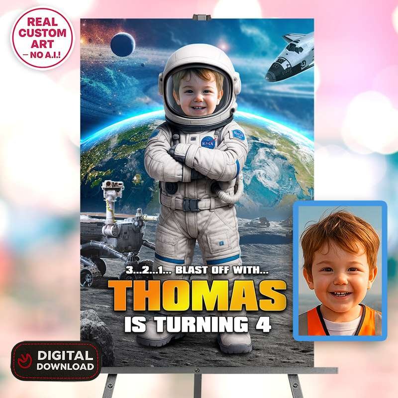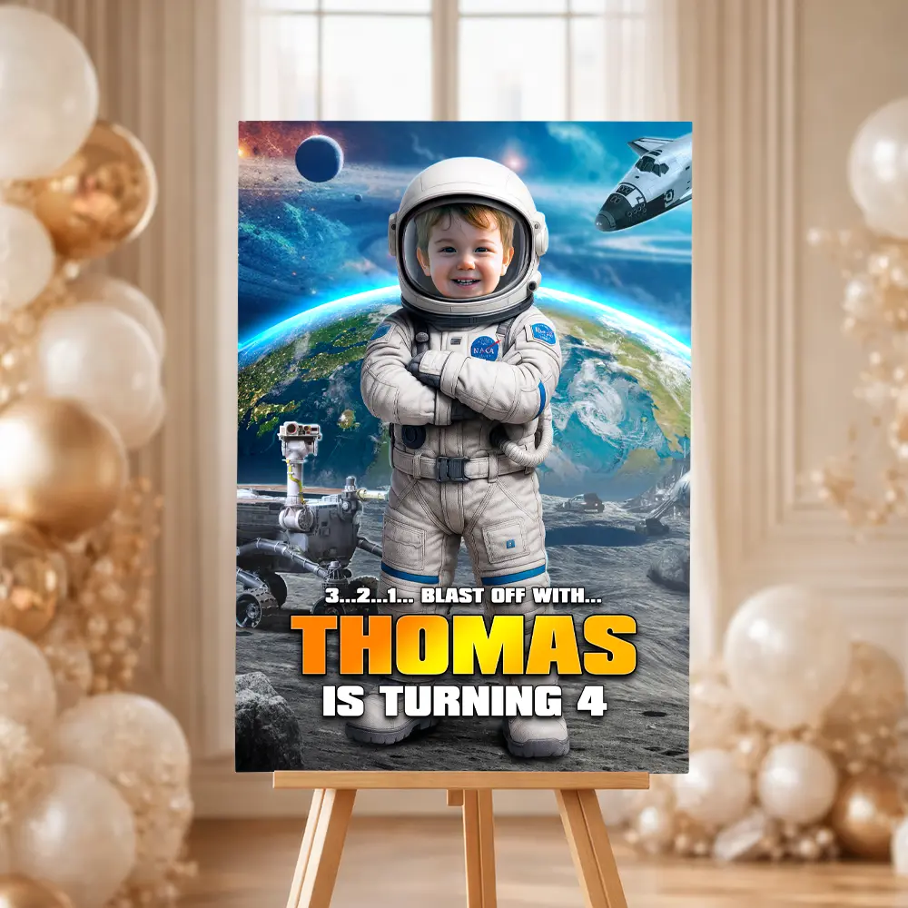 Welcome guests in style with our Custom Astronaut Birthday Welcome Sign 🌌 Fully personalized with your child’s photo, delivered in 24h.
