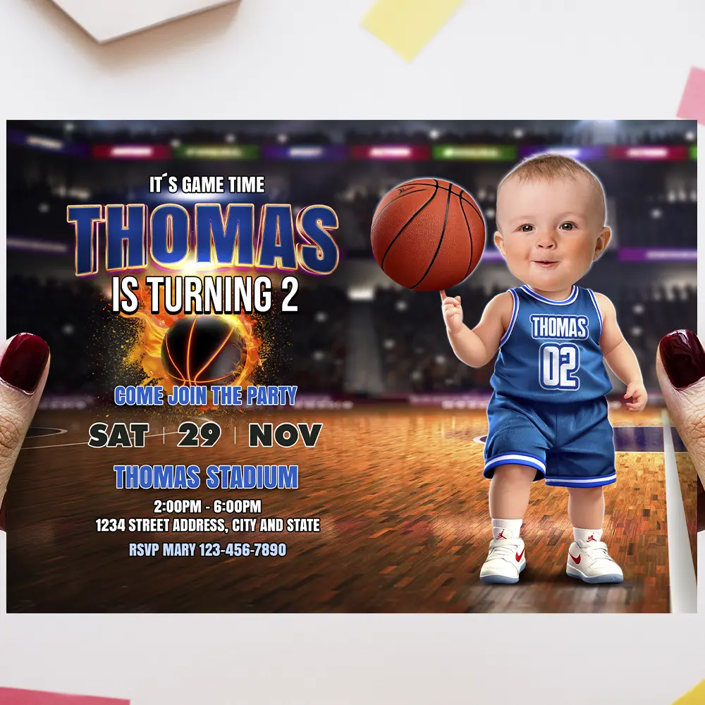 This isn’t just an invitation — it’s a personalized digital artwork that celebrates your child’s charm and gives guests an exciting preview of the slam dunk celebration ahead! Whether printed or shared digitally, it adds fun, flair, and creativity to your event.