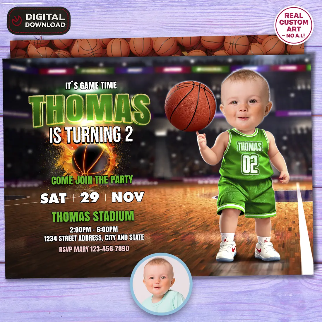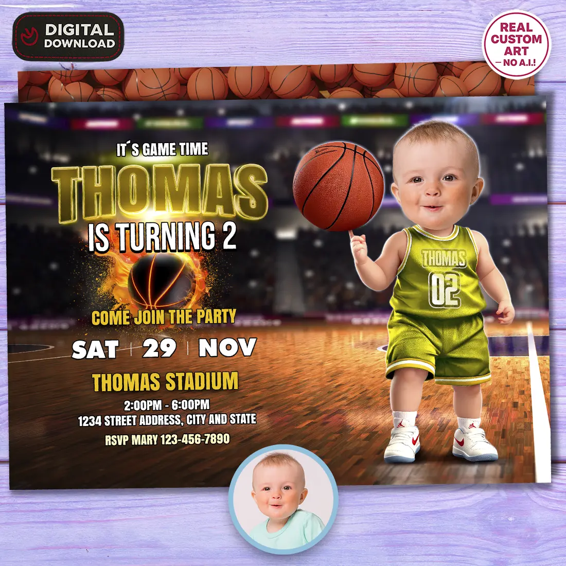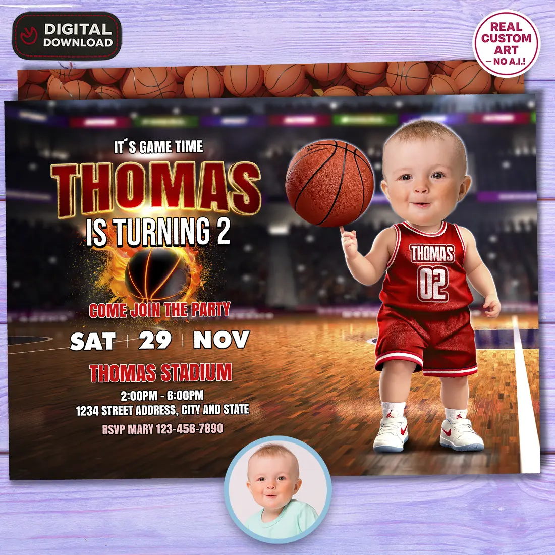 Personalized Baby Basketball Player Birthday Invitation – Custom Sports Theme Design – Delivered in 24h – Digital File