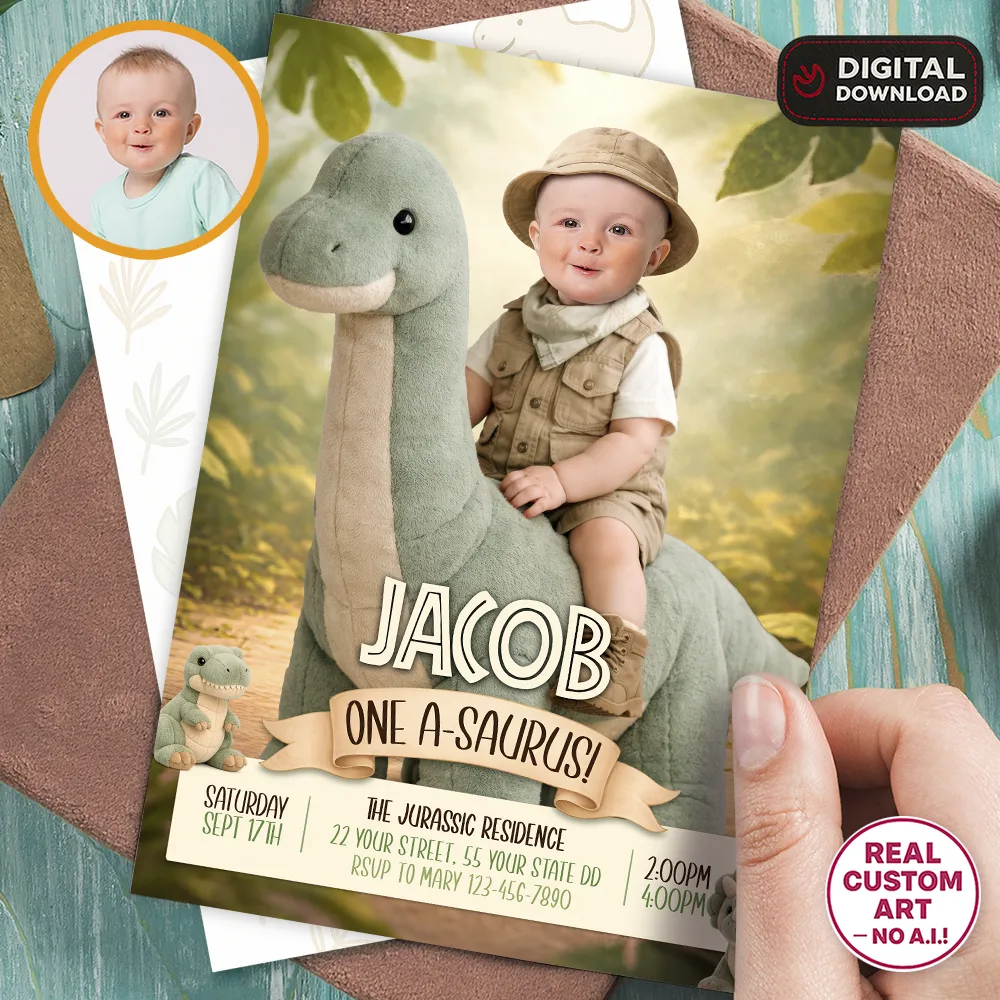Baby Dinosaur Invitation – Custom 1st Birthday Photo Invitation – Delivered in 24h – Digital File