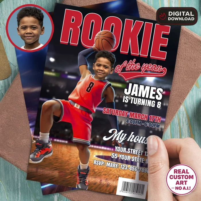 Custom Basketball Birthday Invitation With Photo – Custom Rookie Of The Year Invitation – Delivered in 24h – Digital File