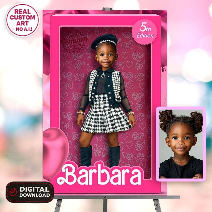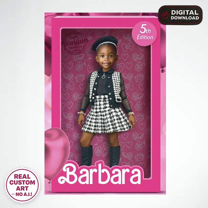 ⭐ Bold & Personalized – Your child’s photo is seamlessly edited into a powerful doll box-style layout, celebrating her unique features and radiant smile