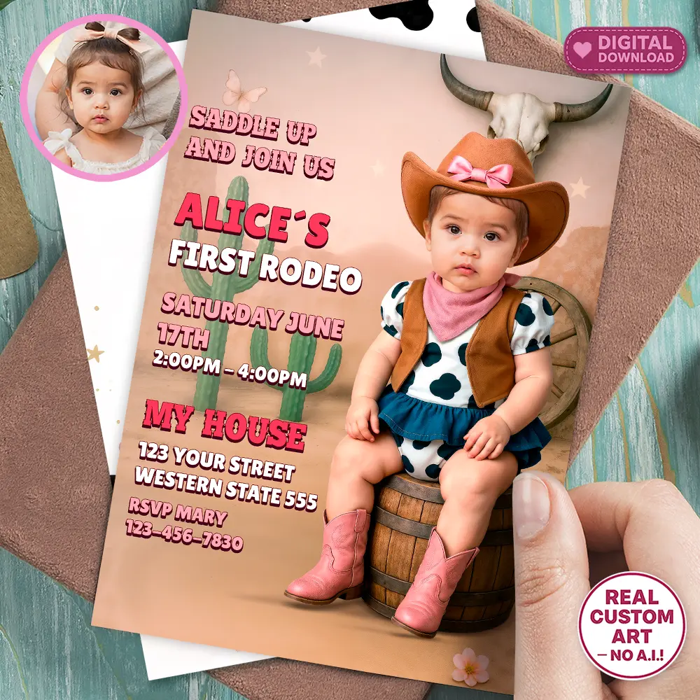 Personalized First Rodeo Birthday Invitation for Girls – Custom Cowgirl Theme Design – Delivered in 24h – Digital File