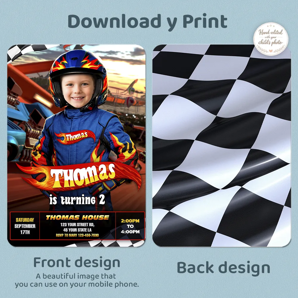 Race Car Party Invitation – Custom Wheel and Racing Birthday Photo Invitation – Delivered in 24h – Digital File