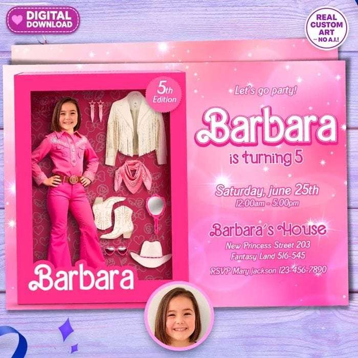 Give your daughter the spotlight with this charming, high-quality Custom Rodeo-Themed Doll Birthday Invitation for Girls (Digital). A magical way to kick off her special celebration — no matter her age.