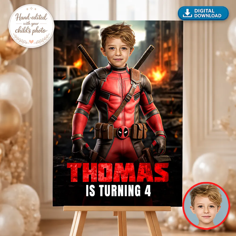 Is your little one ready for some maximum effort? Our Personalized Superhero Birthday Welcome Sign features the iconic red and black suit of the world’s most charismatic hero. With a high-action comic book background, dramatic lighting, and a touch of “cool guy” attitude, this design transforms your child into a legendary defender the moment guests arrive. It’s the perfect statement piece for a “Superhero Training Camp,” “Red & Black” themed party, or any celebration inspired by witty, action-packed adventures.