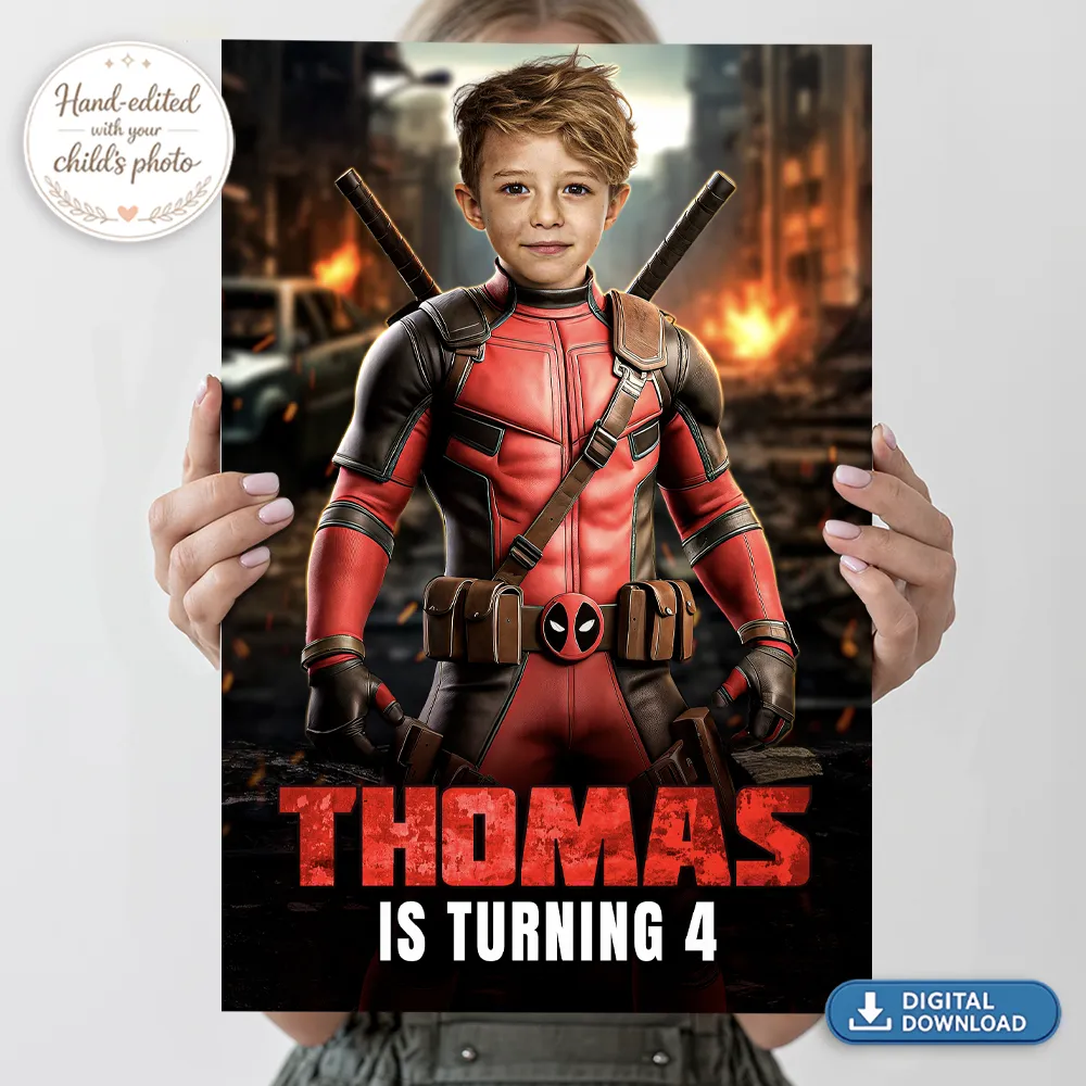The secret behind our “blockbuster” welcome signs is our expert manual photo editing. To make your child look like a true movie star, our designers carefully integrate their face into the hero’s suit and mask by hand. We meticulously match textures, lighting, shadows, and reflections to create a seamless, high-definition result that looks professionally cinematic. We don’t rely on generic AI filters — every design is hand-crafted to ensure your little hero looks bold, realistic, and ready to greet their guests in superstar style.