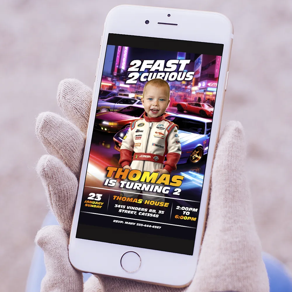 Order your custom 2 Fast 2 Curious invitation today for just $5.99 and get ready to roar!