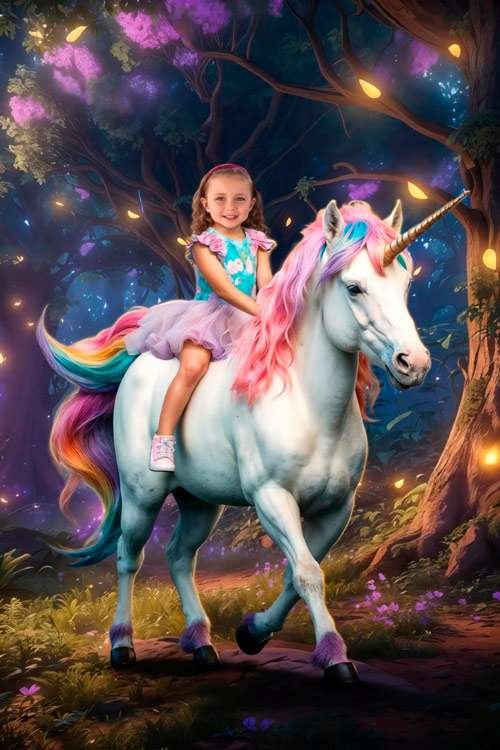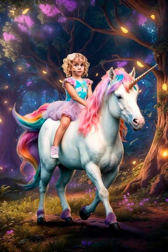 Every invitation is 100% handcrafted in Photoshop by a professional designer. We don’t use AI or generic templates. Instead, we carefully integrate your child’s photo into the unicorn scene with natural lighting, vivid colors, and delicate details to create an authentic and enchanting result.