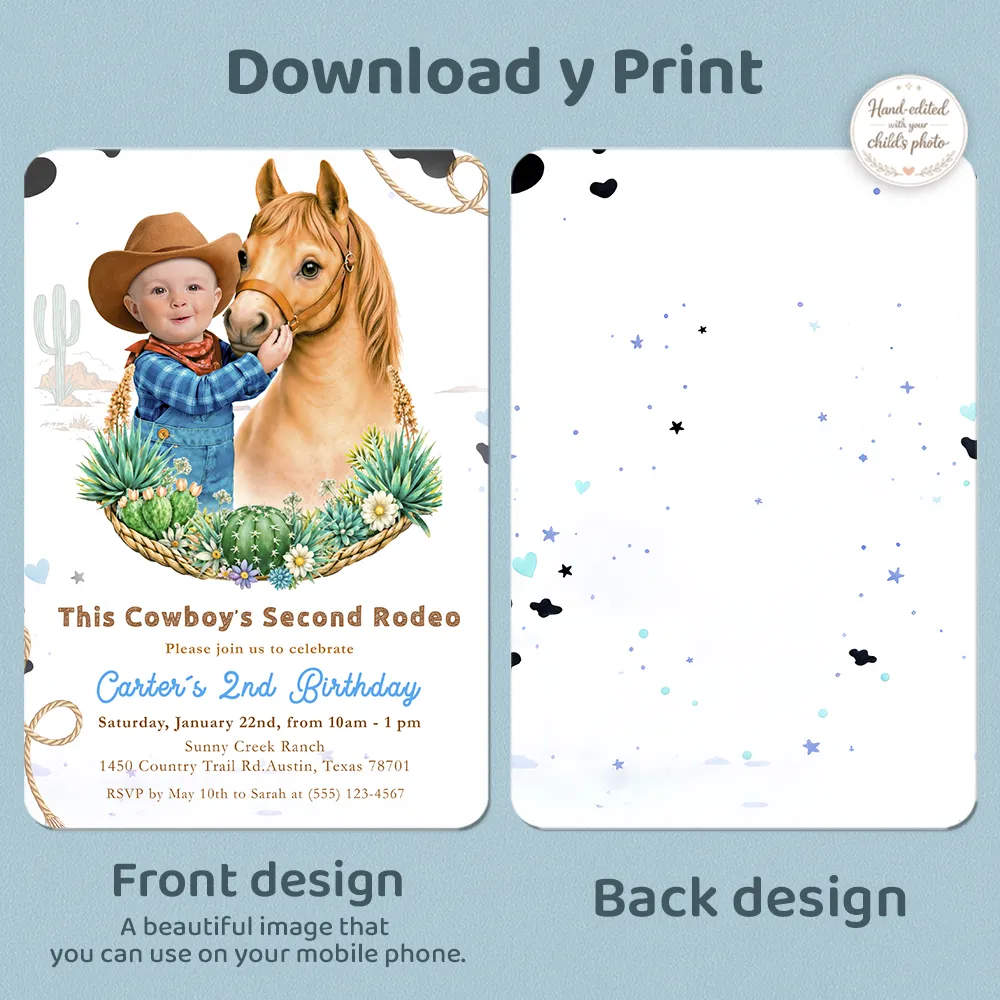 Yes — this design is created specifically for 2nd birthdays, with toddler-friendly proportions, soft rodeo details, and a fun “second rodeo” theme parents love.