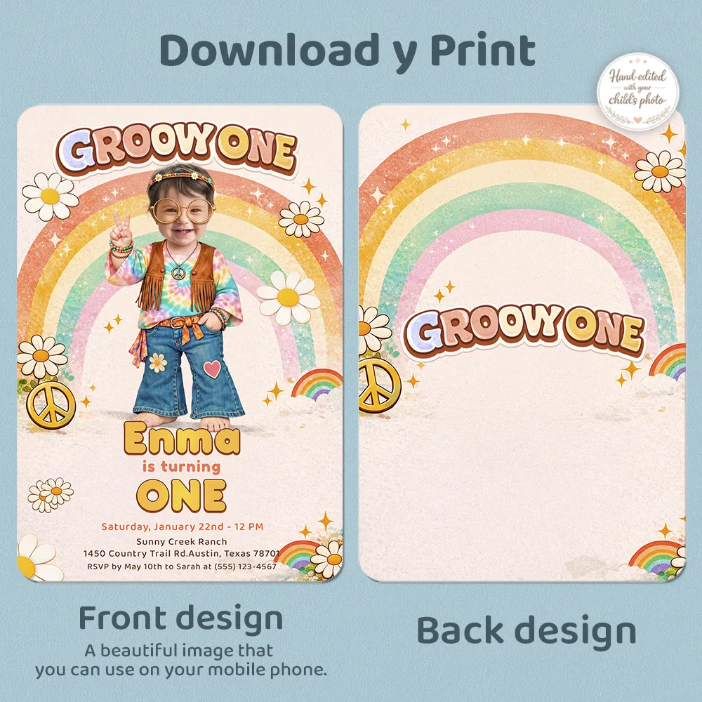 Get ready to throw the sweetest retro celebration ever! Our One Groovy Baby Invitation transforms your little girl into the star of a dreamy hippie-inspired party—full of warm boho colors, cute 70s details, and total “keepsake” energy.