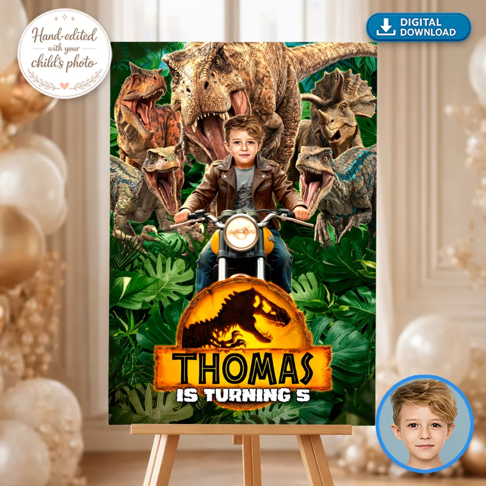 Absolutely. We have coordinating welcome signs, banners, cupcake toppers, and thank-you tags in the same Ranger & Raptor Jurassic Explorer style. If you need something specific, just ask!