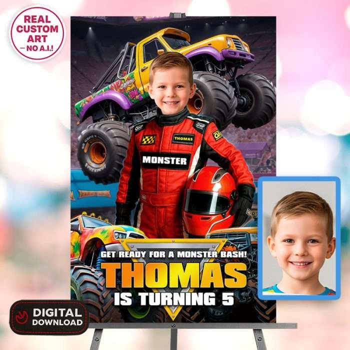 Make your child’s birthday epic with our Epic Monster Truck Racing Welcome Sign 🚦 Bold, personalized party poster with your kid as the driver.