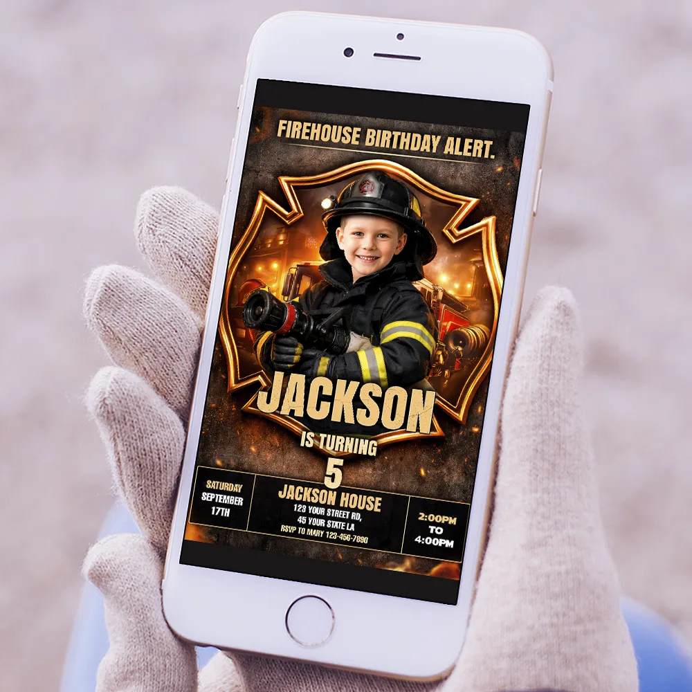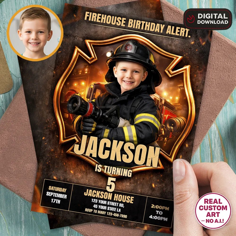 Firefighter Birthday Invitation – Personalized Fire Rescue Photo Invitation – Delivered in 24h – Digital File