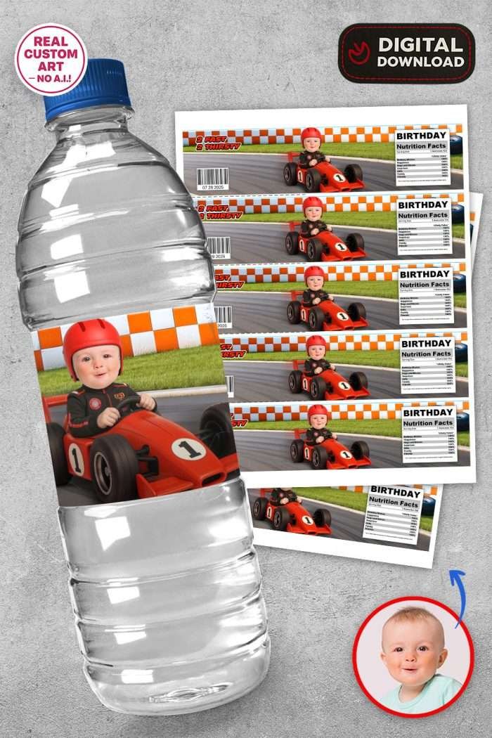Make your party drinks unforgettable with our Growing Up Two Fast Bottle Label Stickers for 16 oz Water Bottles (THIS IS A DIGITAL FILE). Designed specifically for first and second birthdays, these bottle labels transform ordinary drinks into themed party elements that perfectly match your Growing Up Two Fast race car party.