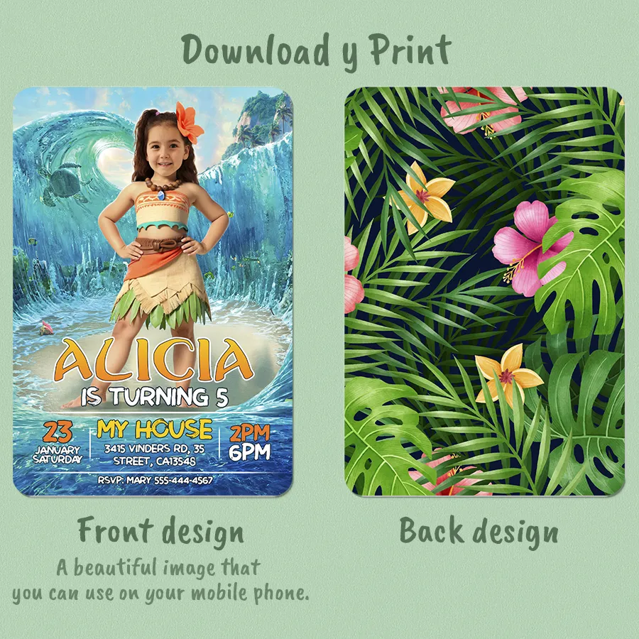 🌺 Island Adventure Princess Invitation – Personalized Birthday Photo Invitation – Delivered in 24h – Digital File