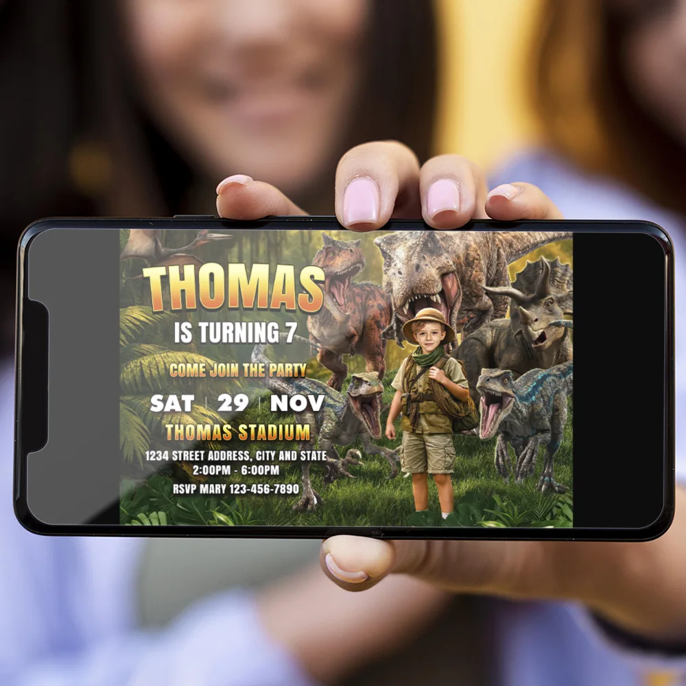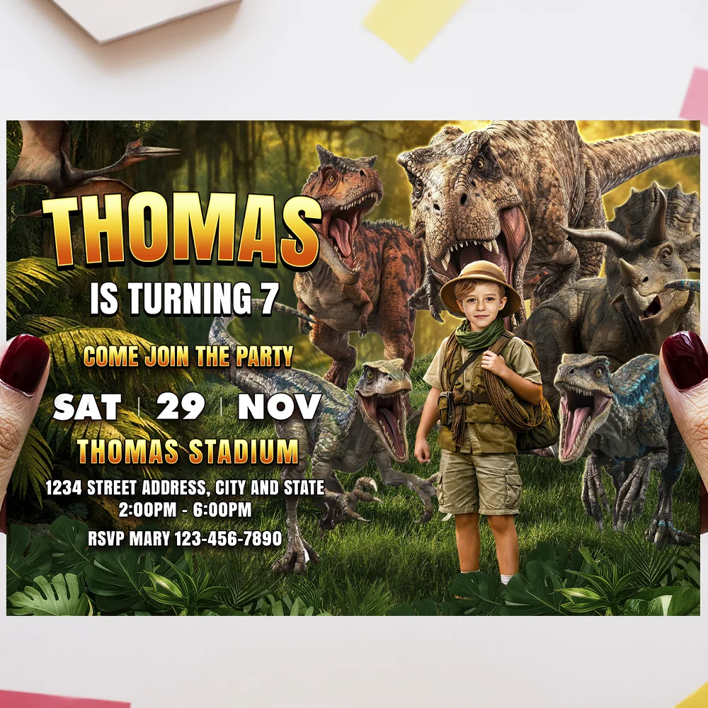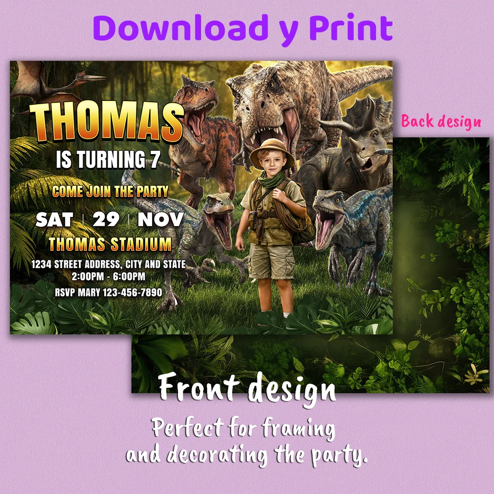 Jurassic Birthday Invitation – Personalized Dinosaur Photo Invitation – Delivered in 24h – Digital File