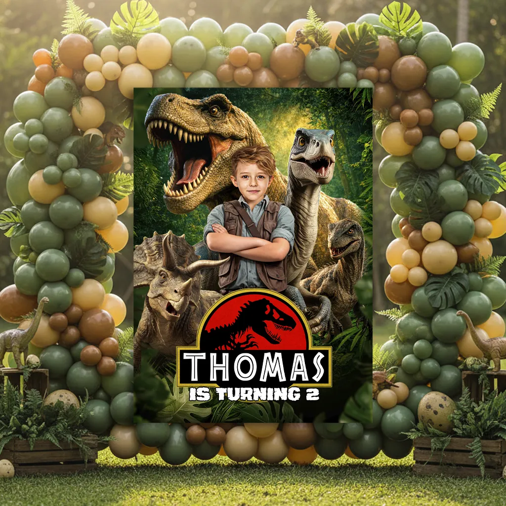 Set the scene for a prehistoric adventure! Our Custom Jurassic Raptor Welcome Sign is the ultimate centerpiece for your party entrance. Featuring a rugged Ranger Raptor 4×4, life-like dinosaurs, and a dense jungle atmosphere, this sign puts the birthday girl or boy right in the middle of the action. It’s the perfect way to welcome guests to a “Dino Quest,” “Jurassic Safari,” or “Wild One” celebration.
