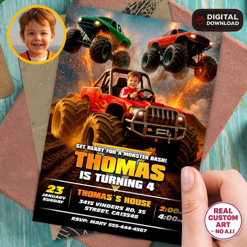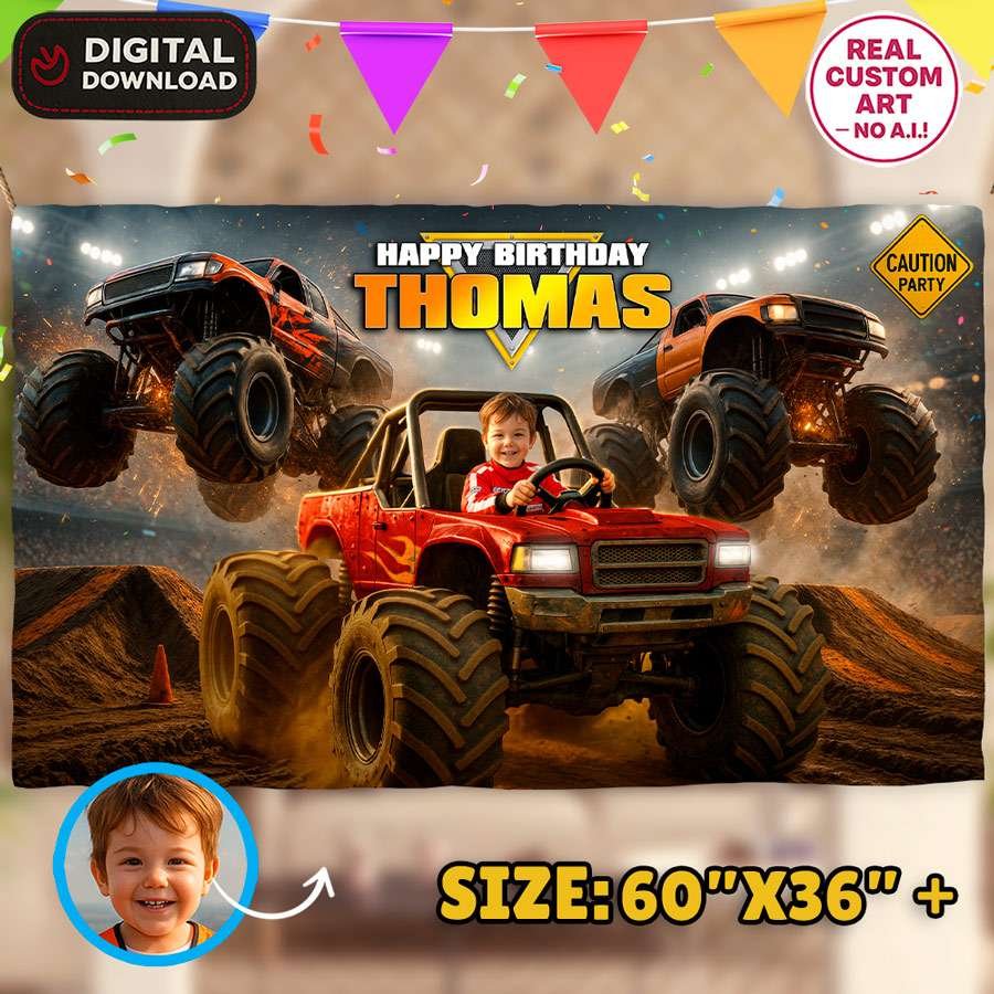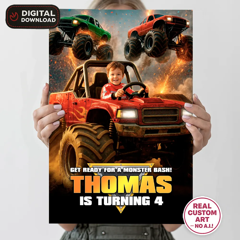 🚛 Monster Truck Birthday Bundle – Personalized Monster Truck Party Pack with Photo – Digital Download – Ready in 24h