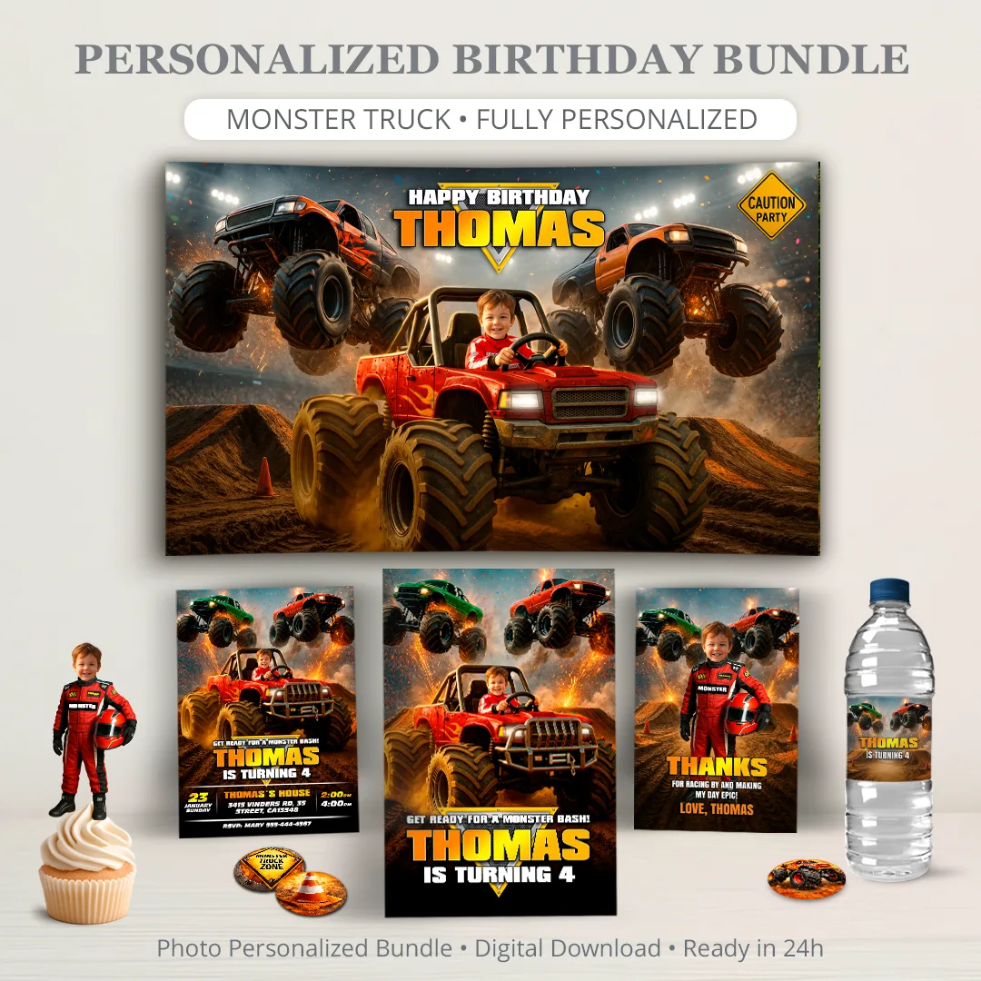 Monster Truck Birthday Bundle – Personalized Monster Truck Party Pack with Photo – Digital Download – Ready in 24h