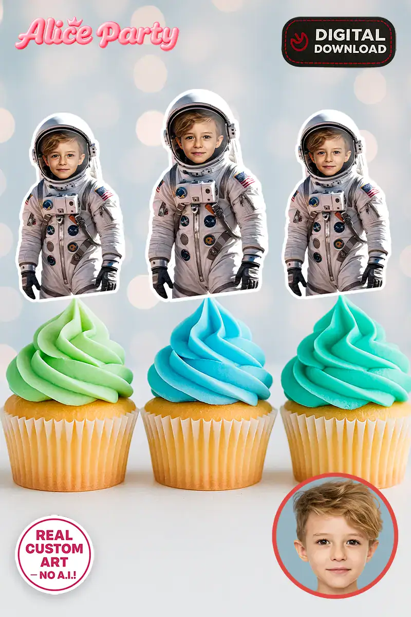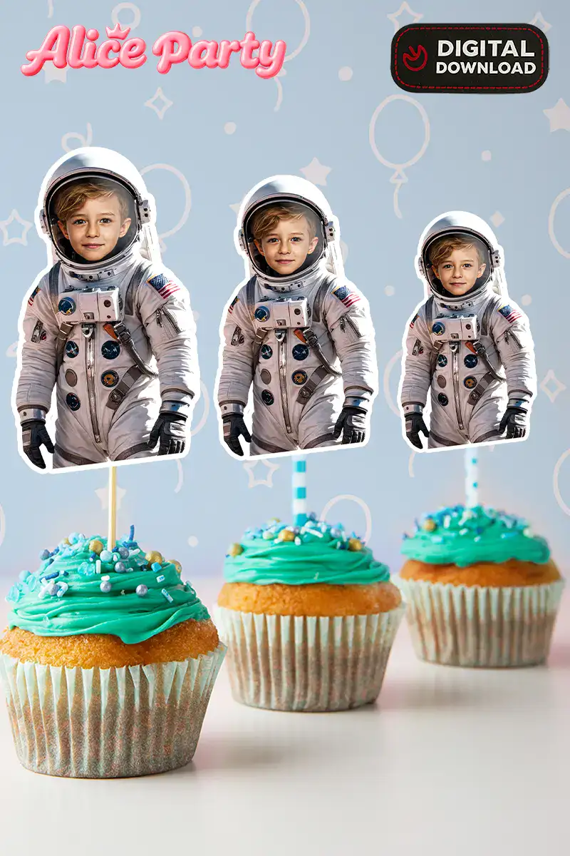 Personalized Astronaut Cupcake Toppers with Your Child’s Face – Custom Space Theme Party Decoration – Delivered in 24h – Digital File
