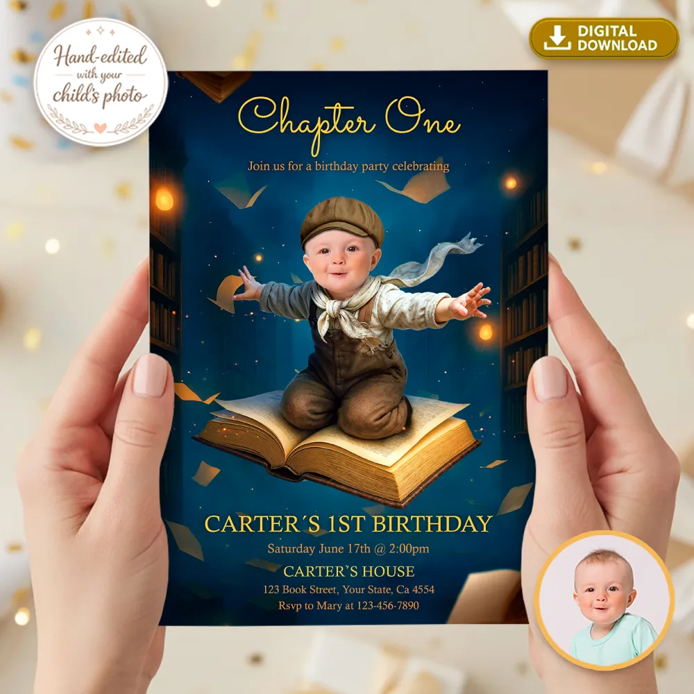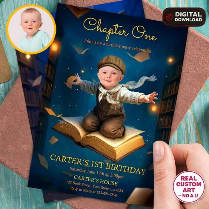 Each Custom Chapter One Birthday Invitation is created from scratch by an experienced designer. No automated filters, no AI — just professional, detailed work to make your little one shine.