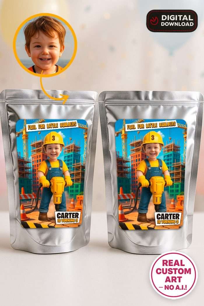 Personalized Construction Birthday Capri Sun Labels – Custom Builder Party Drink Pouches – Made to Order Digital File
