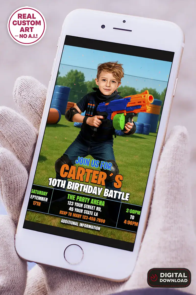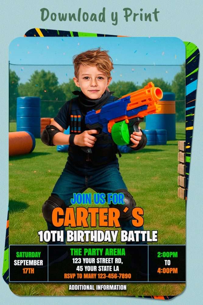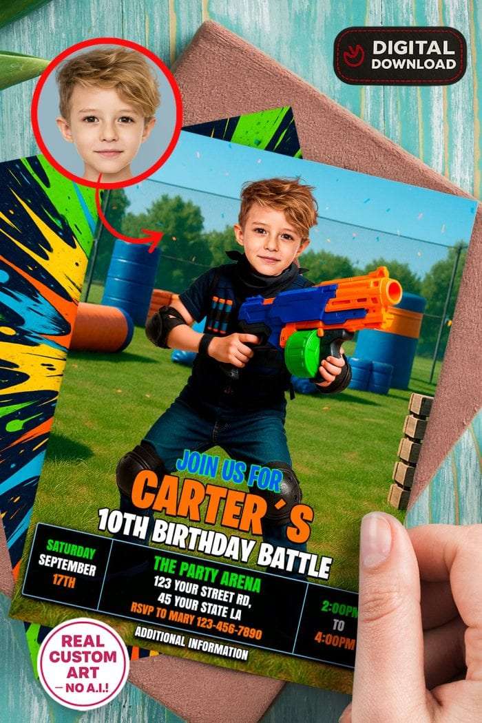 Personalized Dart Battle Birthday Invitation with Photo – Toy Blaster Theme – Boys Action Birthday Invite – Delivered in 24h – Digital File
