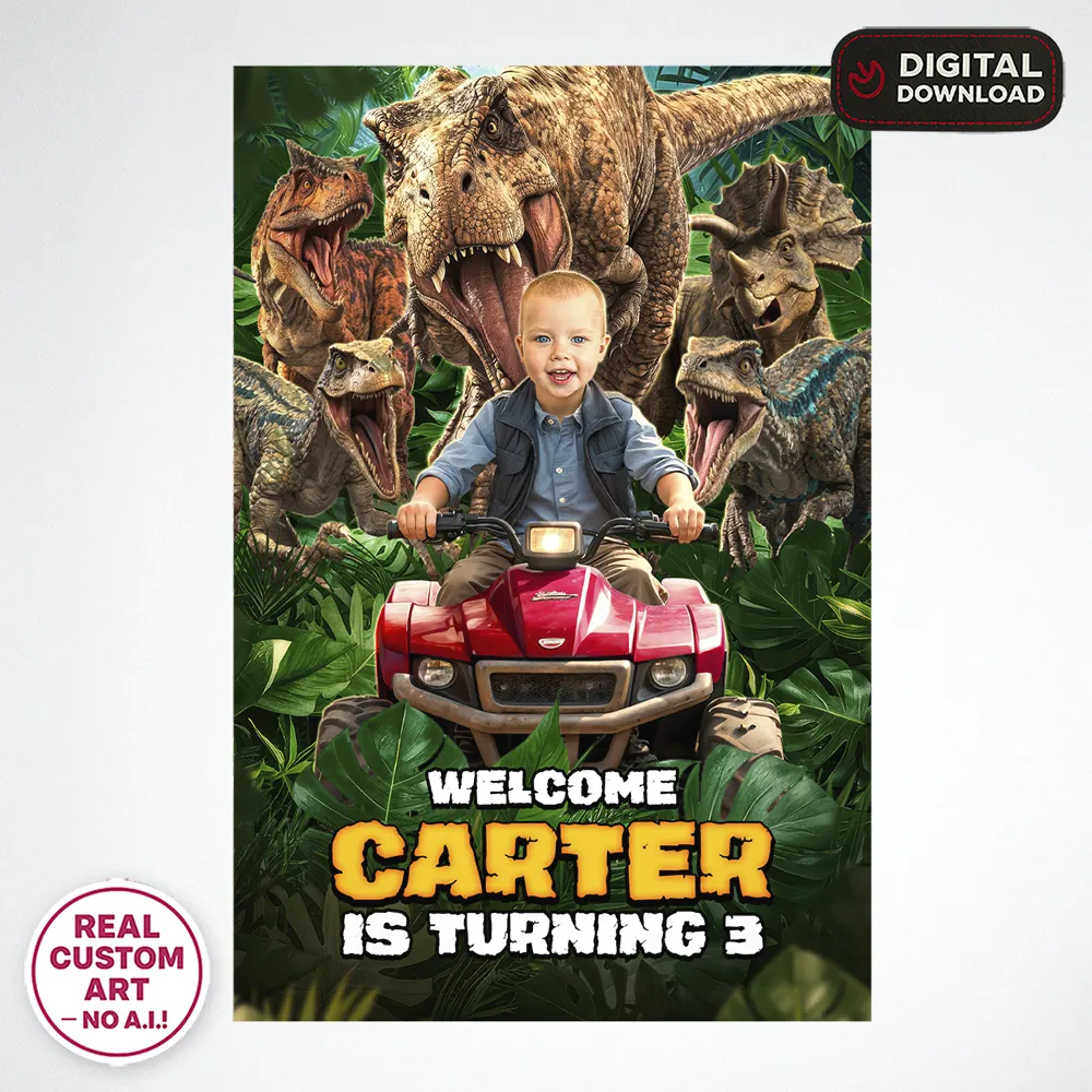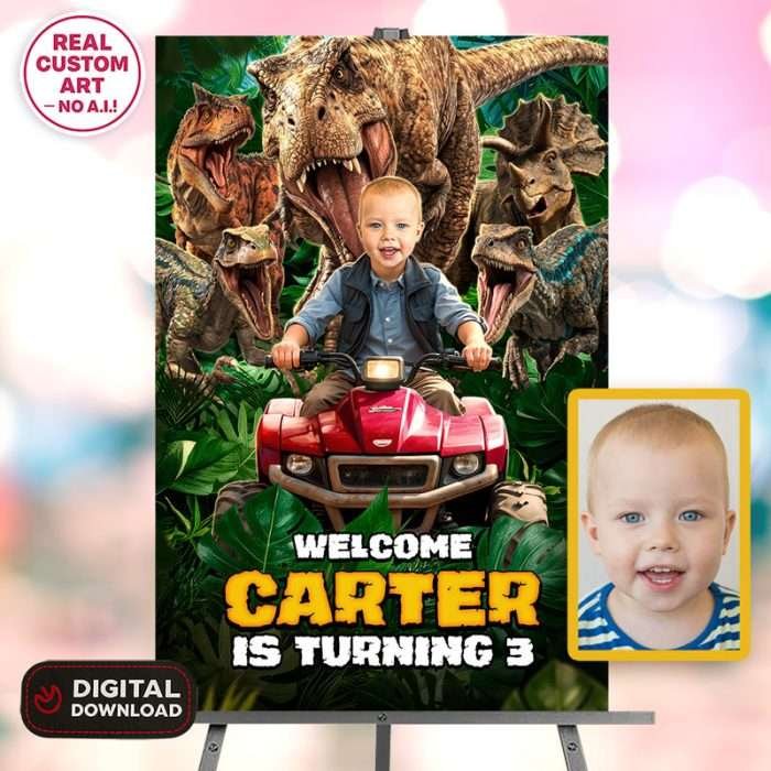 Turn your child’s birthday into a prehistoric race with our Personalized Dinosaur Quad Welcome Sign! 🦖🏎️