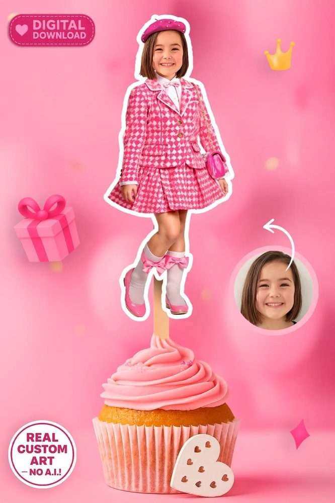 Turn your child into the star of her own birthday with these Personalized Doll-Inspired Cupcake Toppers! Dressed in a fabulous outfit and styled like a classic doll, your little one will shine at the center of each cupcake.