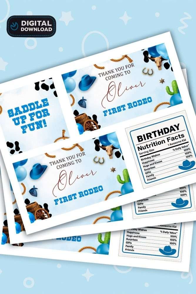 Bring your little cowboy’s celebration to life with our Personalized First Rodeo Blue Birthday Labels! 🐴💙Ready to print in 24h.