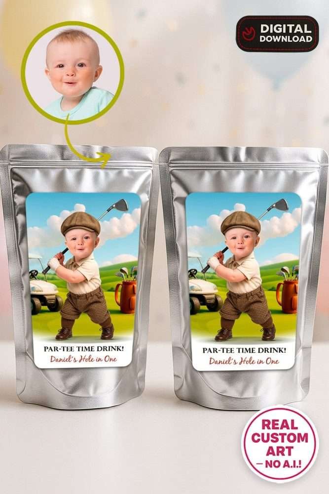 Personalized Hole in One Birthday Capri Sun Labels – Custom Golf Party Drink Pouches – Made to Order Digital File
