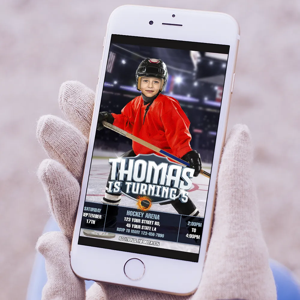 Personalized Ice Hockey Birthday Photo Invitation – Custom Digital Design