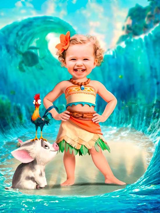 I am very happy to have found such a high-quality service! I am really very satisfied with my daughter’s photo where the chosen theme was Princess Moana. Fast delivery and good service, answering my questions quickly! I highly recommend it.