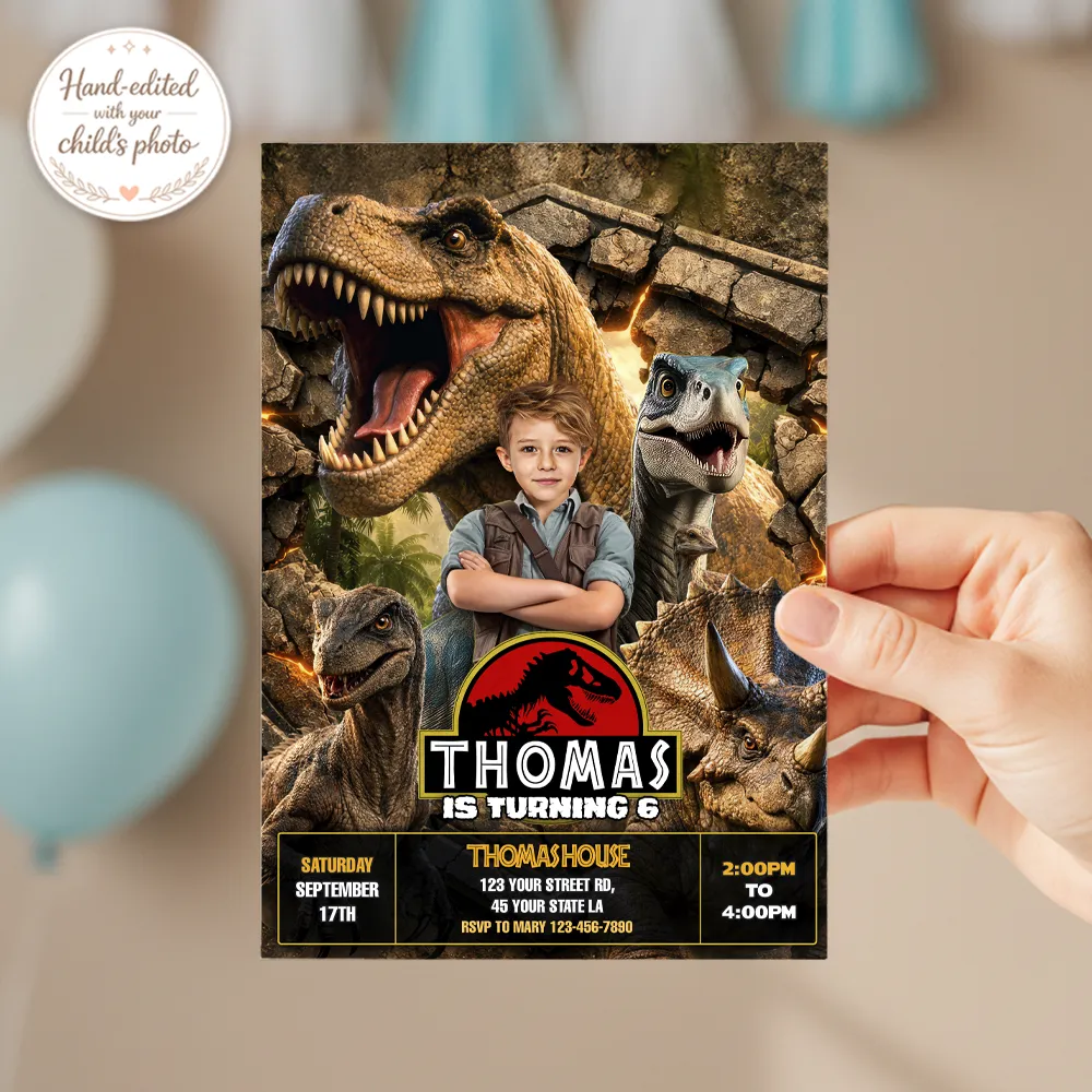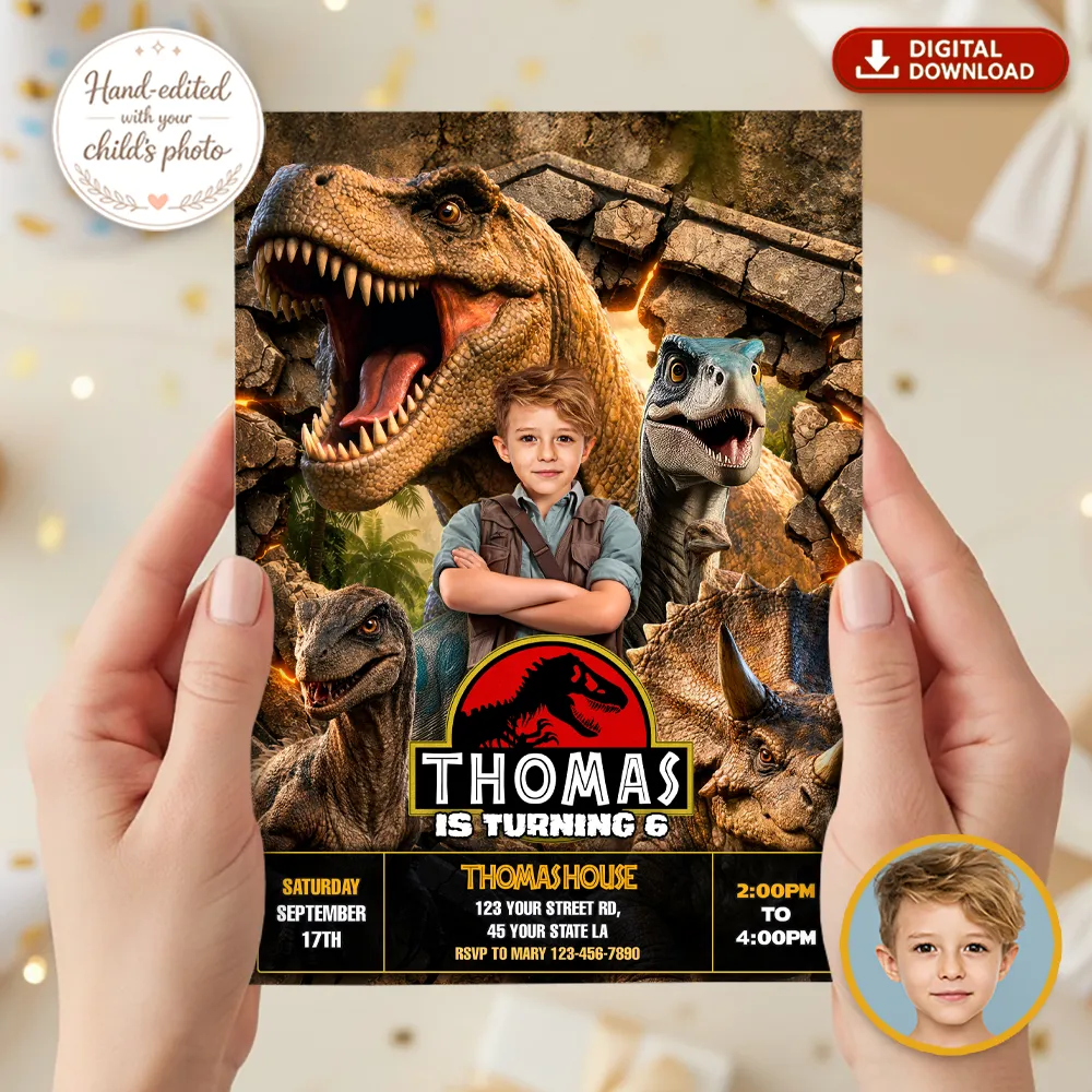 Personalized Jurassic Kids Invitation | Custom Dino Park Ranger Photo Invite