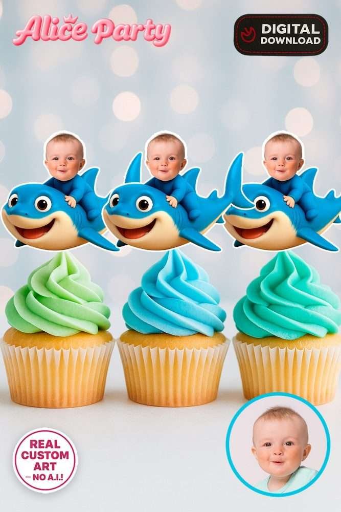 Adding personalized details is what makes a birthday party truly stand out, and cupcake toppers are one of the easiest ways to achieve that wow factor. Our Personalized Little Shark Cupcake Toppers are more than just decorations — they are keepsakes that feature your child as part of the design. Whether you’re planning a first birthday or a fun toddler celebration, these printables bring the whole under-the-sea theme to life. Parents love that they can print as many copies as needed, making them both budget-friendly and stress-free.